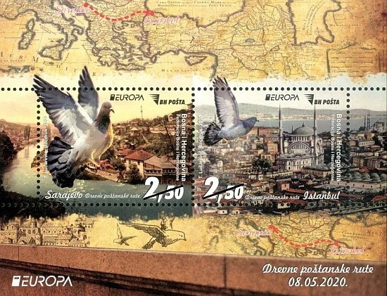 Europa stamps are special stamps issued by European postal administrations/enterprises and bear the official EUROPA logo, a registered trademark under the aegis of PostEurop in which Europe is the central theme. The theme for the 2020 Europa issues is “Ancient Postal Routes” and from the issues released thus far, will prove to be very exciting for cartophilatelists. From 9 May till 9 September 2020, PostEurop is sponsoring a contest where visitors can vote for the most beautiful 2020 EUROPA stamps entries for the 2020 theme. While the PostEurop site is the official issue listing, Jurgen Haepers’ long running and well known “europa, cept, norden & sepac stamps information blog” is the go-to destination for large issue images and up-to-date information. Here you will also find a continuously revised post, Europa 2020 “Ancient postal routes” showcasing the this year’s new issues. This year’s issues are shaping up to have some wonderful and diverse cartophilatelic designs. A few samples are shown below. We will continue to monitor the forth-coming new issues.